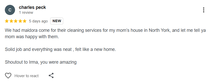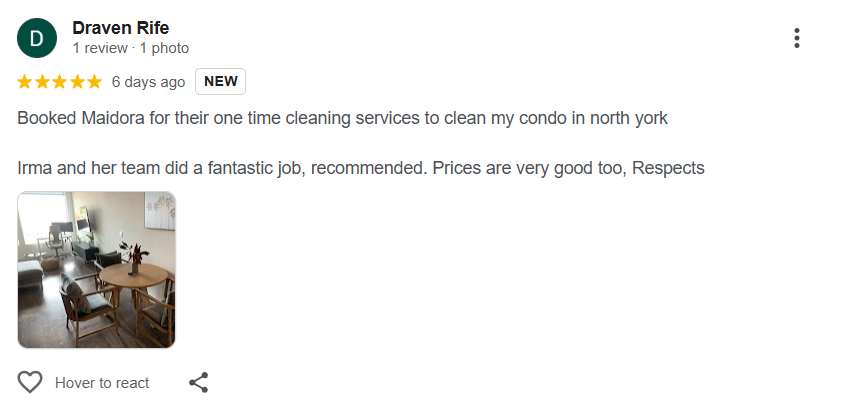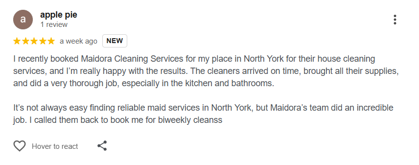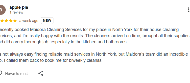 Fully insured and detail-oriented, Maidora Cleaning Services North York focuses on delivering consistent results and high-quality cleaning you can rely on. If you're searching for trusted cleaning services near me in North York, our professional cleaners are ready to help keep your home or office spotless