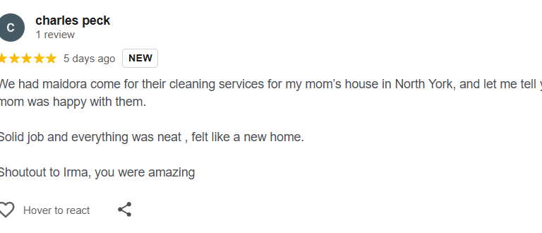 Call Maidora today for reliable cleaning services and maid services in North York. Book Now in 60 seconds!